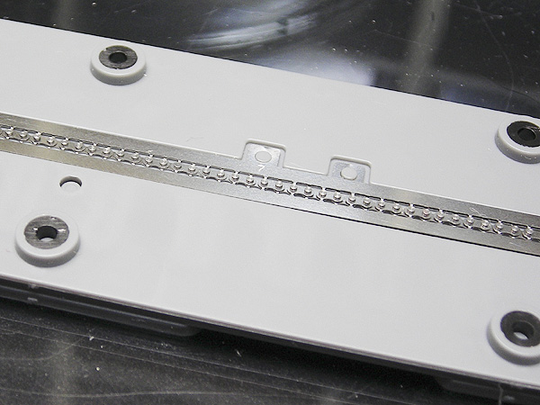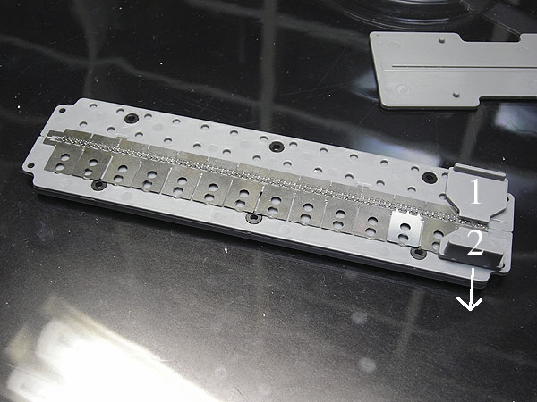 表側のプレート2枚をセットし、ピンを差し込みます。 肉眼で作業できました。 |