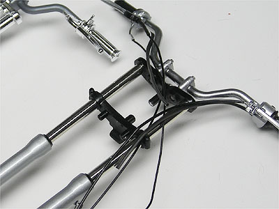 ブレーキのトルクロッドを0.6ミリ洋白線に置き換え、スプリングも組み込みます。 |